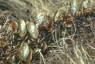 Ticks are bloodsucking vertebrate ectoparasites, belong to the order Acarina. There are over 870 species of, ticks divided mainly into "soft ticks" and "hard ticks". Soft ticks, which lack a dorsal shield, are further divided into two kinds: Argas and Ornithodorus. Hard ticks have a distinctive chitinous dorsal shield and there are six kinds in Italy: Ixodes, Boophilus, Hyalomna, Rhipicephalus, Dermacentor, and Haemaphysalis. The species with the possibility of contact with Man include Argas reflexus, Rhipicephalus sanguineus, and Ixodes ricinus.