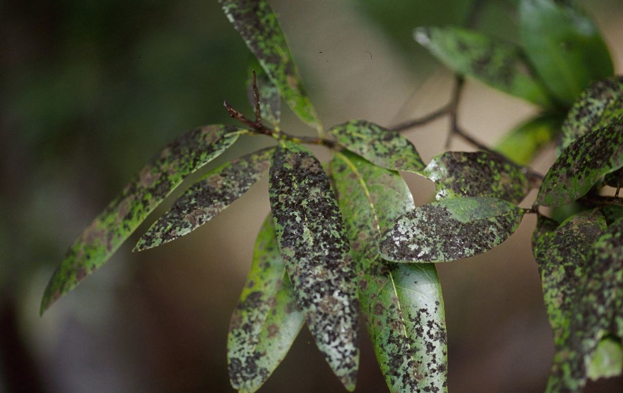 Sooty mold indirectly damages the affected plants by covering the leaves and trunk with a dark patina that reduces their photosynthetic activity and weakens them, making the plants sick.