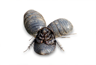 FEATURES: the female is blackish-brown in colour and round in shape, while the male has a pronotum with a yellowish edge on the front fascia. It is found in southern Italy, and presents obvious sexual dimorphism. A medium-large cockroach, it is distinguished from other species by its blackish colour, and round, convex body.