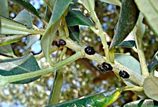 DIET/DAMAGE: The damage is seen on the branches and leaves, and is caused by the feeding of the insect. Scale insects use the undersides of leaves, along the midrib; the attack removes sap causing hindrance to the development of the buds, and reduced production of fruits that often fall as a result. In general there is a deterioration of the plant, with dieback of branches and leaves; the consequences of the attack also affect production in future years. Moreover, Saissetia oleae produces abundant honeydew which also causes asphyxiation and burns (due to the lens effect), encourages ants (which stimulate production of even more honeydew), and promotes the establishment of sooty mould that causes further damage.